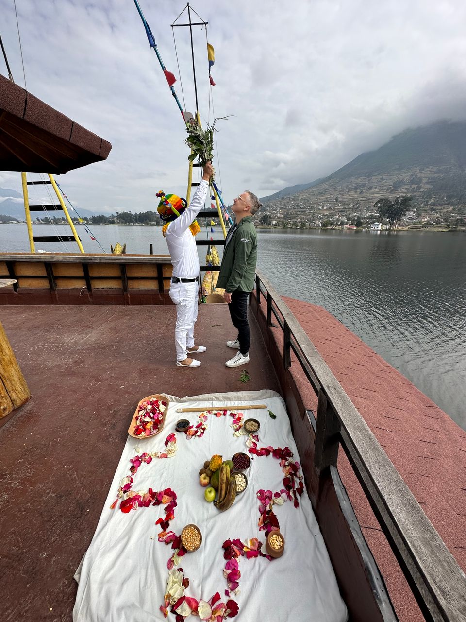 Op het Imbacocha meer, beter bekend als het San Pablo meer, maakte ik in de vroege ochtend een rondvaart. Tijdens het varen leerde ik over de legende van Mama Cotacachi en Tata Imbabura. Ook bedankte ik de vulkaantoppen met Aya Huma, een spiritueel figuur uit de Kichwa cultuur. Deze combinatie van een kleurrijke en boeiende cultuur, in een decor van een adembenemend berglandschap met eeuwige sneeuw bedekte vulkaantoppen en kristalheldere meren, omgeven met dichte bossen en landerijen, is werkelijk betoverend.
