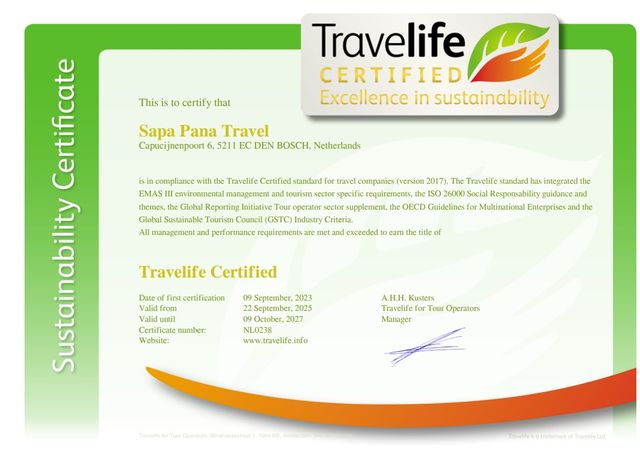 In september 2023 heeft Sapa Pana Travel het Travelife certificaat voor Excellence in Sustainability behaald en in september 2025 zijn we gehercertificeerd. Dit is een erkenning voor onze inspanningen op het gebied van duurzaamheid en maatschappelijk verantwoord ondernemen en hier zijn wij trots op. De komende jaren blijven wij kijken naar nieuwe mogelijkheden en ontwikkelingen om onze reizen op een nog verantwoordelijkere manier aan te bieden en te verbeteren. Het is belangrijk om vooruitgang te blijven boeken zodat ook de volgende generaties kunnen blijven genieten van al het moois dat Latijns-Amerika te bieden heeft.